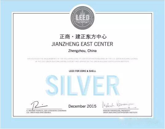 正商建正東方中心榮獲美國綠色建筑LEED認證