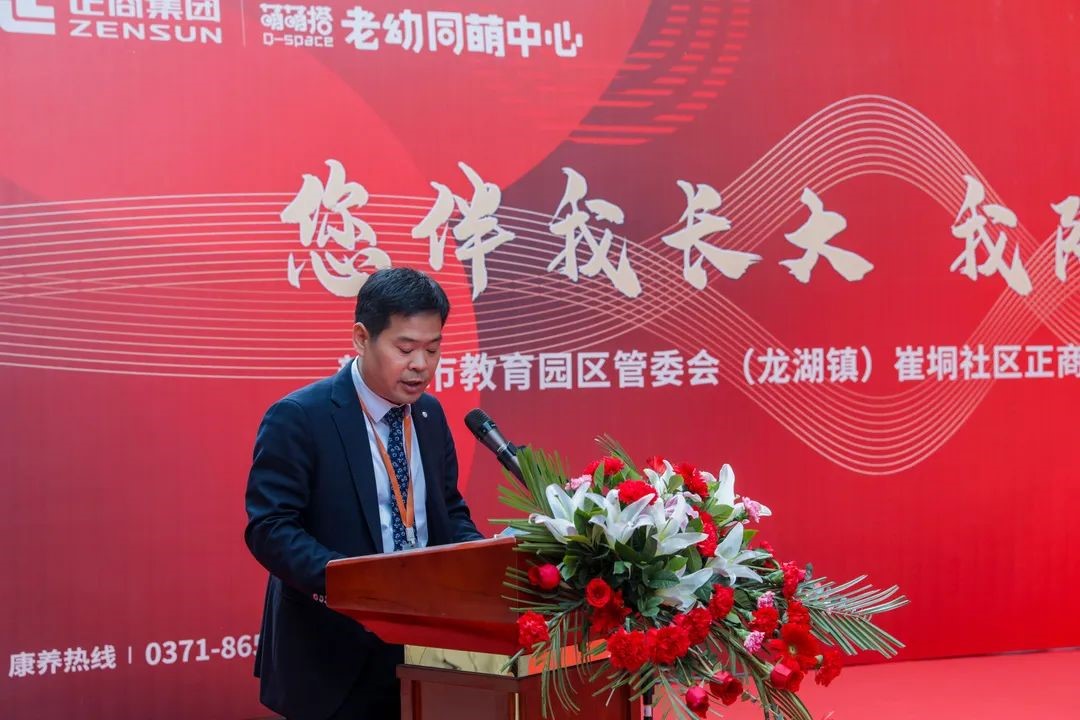 新鄭市教育園區(qū)管委會(huì)(龍湖鎮(zhèn))崔垌社區(qū)主任王明軍首先對(duì)正商老幼同萌中心的順利落成表示祝賀,正商集團(tuán)的“一老一小”戰(zhàn)略體現(xiàn)了正商集團(tuán)對(duì)養(yǎng)老事業(yè)的關(guān)心和支持,也體現(xiàn)了對(duì)社會(huì)養(yǎng)老事業(yè)積極分擔(dān)的決心,同樣也凝聚了承建單位的汗水,并借此機(jī)會(huì),向關(guān)心支持社會(huì)養(yǎng)老事業(yè)的各級(jí)領(lǐng)導(dǎo)和建設(shè)者表示衷心的感謝。對(duì)于正商集團(tuán)積極承接政府購(gòu)買養(yǎng)老服務(wù)表示大力支持,同時(shí)也期待正商集團(tuán)“一老一小”戰(zhàn)略在教育園區(qū)管委會(huì)(龍湖鎮(zhèn))取得更大的成績(jī),社區(qū)與居家養(yǎng)老服務(wù)邁出更堅(jiān)實(shí)的步伐。