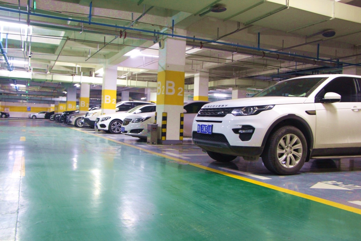 地下停車場區(qū)域標(biāo)識清晰,地面整潔