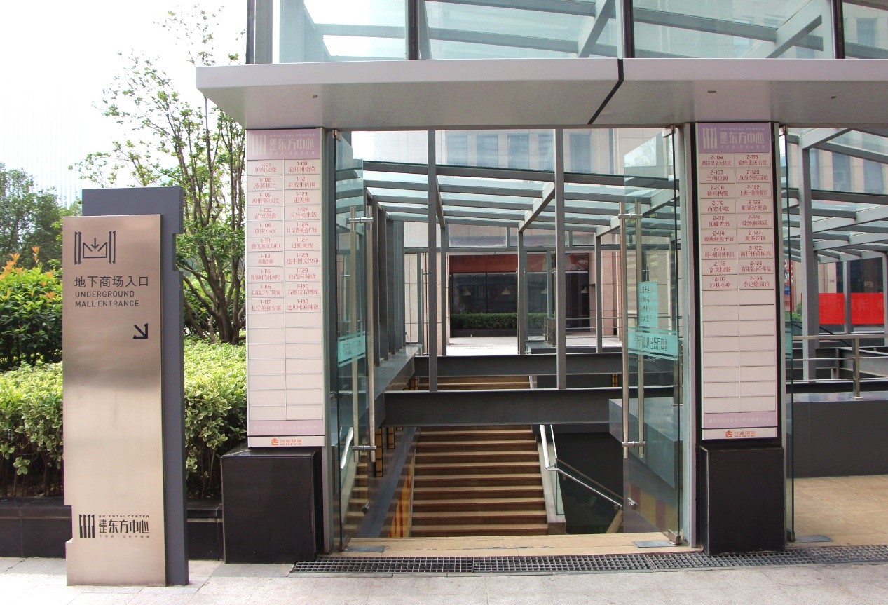 左邊地下商業(yè)街入口指示處、右邊店鋪指示牌,讓上班的白領(lǐng)午間盡享美味。