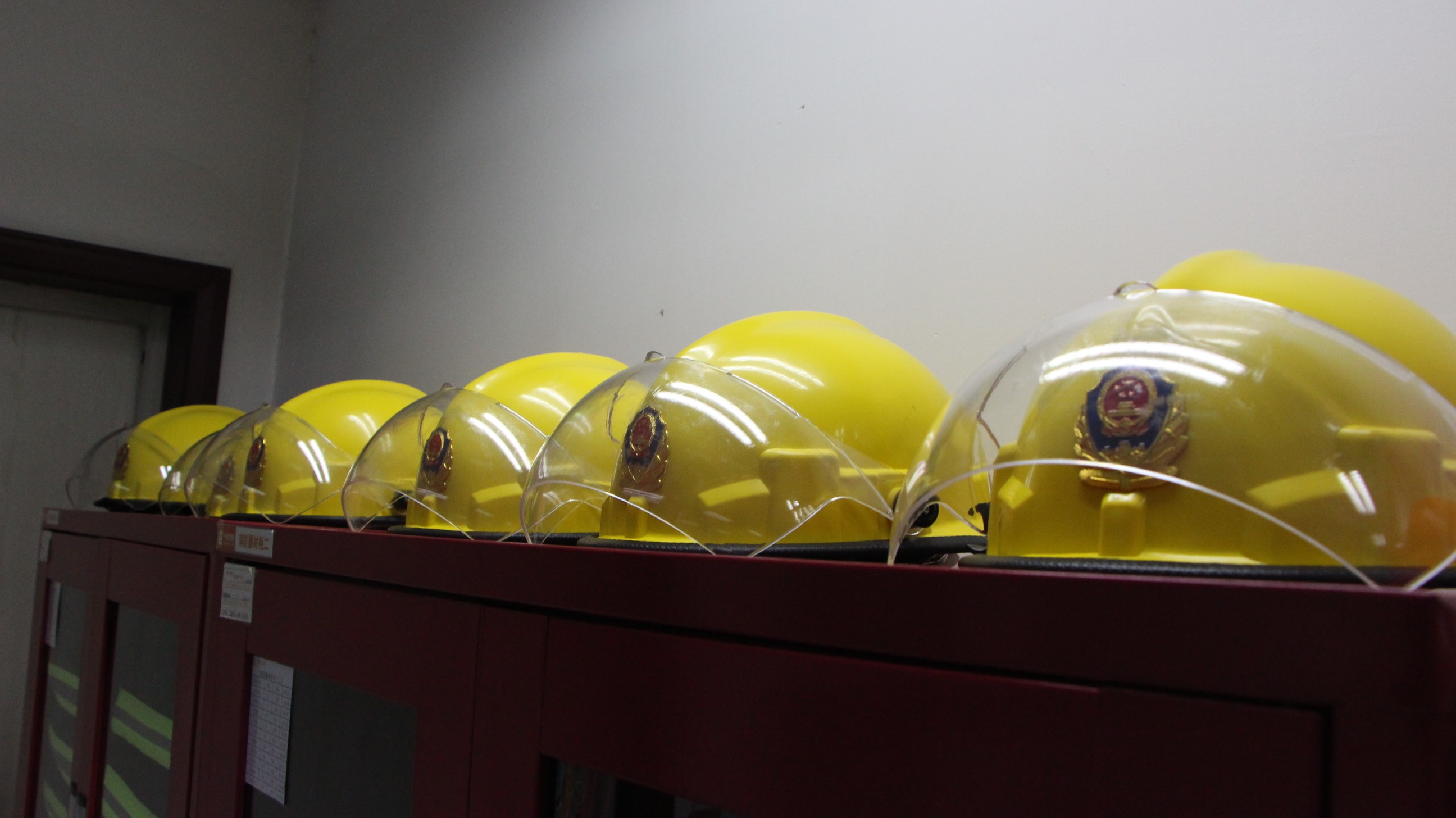 統(tǒng)一標(biāo)準(zhǔn)擺放的消防、秩序帽